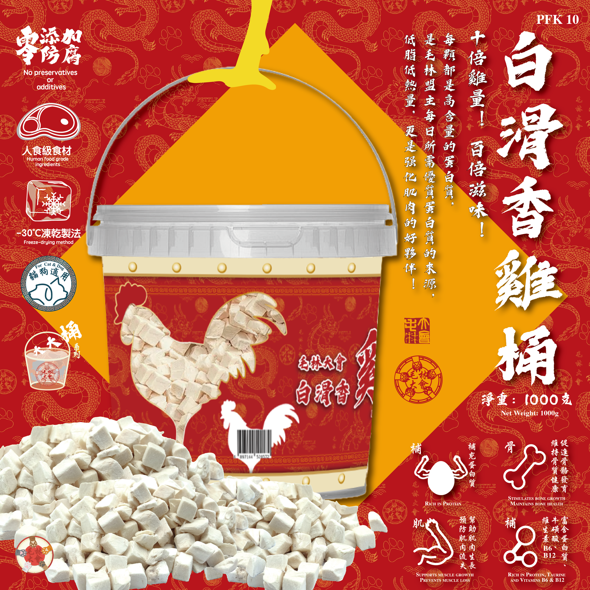 毛林大會重磅推出【白滑香雞桶 1000g】,毛林盟主的皇牌營養巨獻!