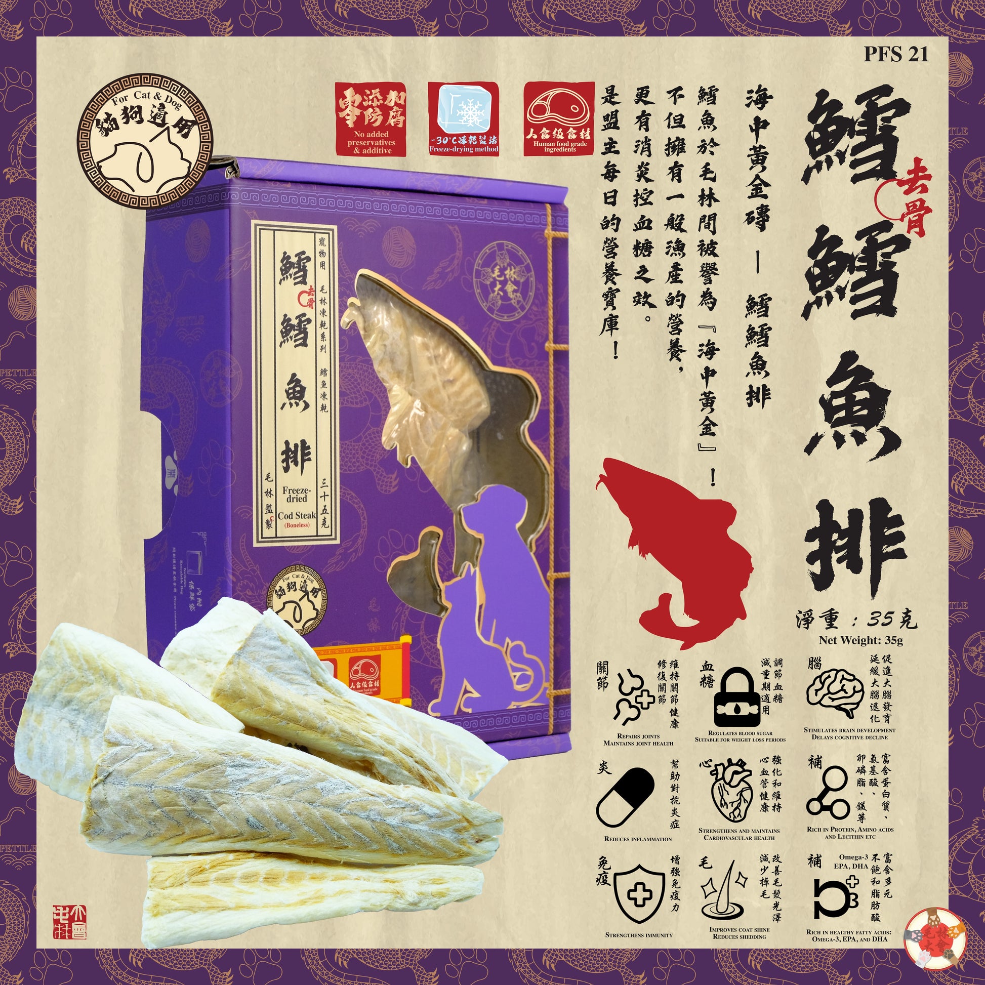 毛林大會 - 鱈鱈魚排 35g (鱈魚凍乾條)
